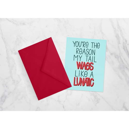 Funny Dog Love Greeting Card – Pet-Inspired Card from the Dog, “You’re the Reason My Tail Wags Like a Lunatic