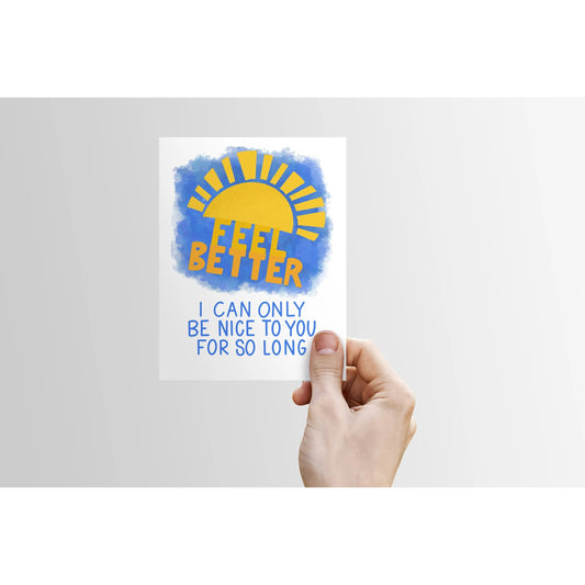 Feel Better-I Can Only Be Nice to You For So Long | Get Well Card | Sick, Funny Card