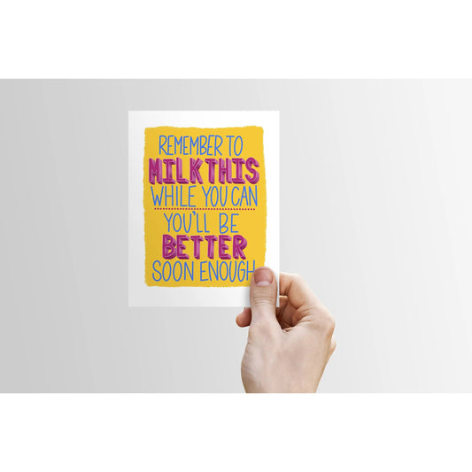 Remember to Milk This While You Can, You'll Be Better Soon Enough - Get Well Card | Sick, Funny card
