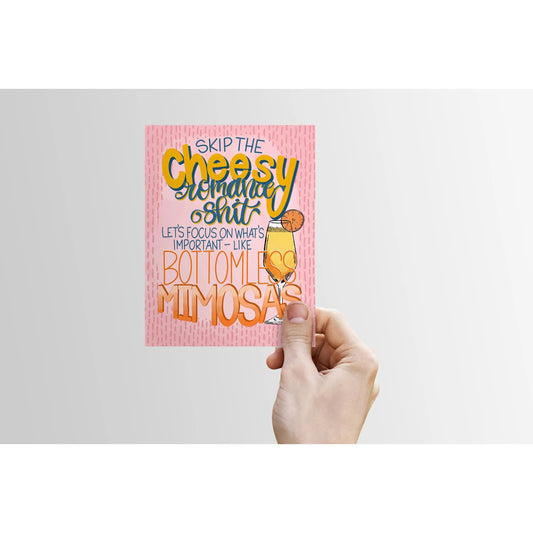 Skip the Cheesy Romance Shit, Let's Focus on....Bottomless MImosas - Greeting Card