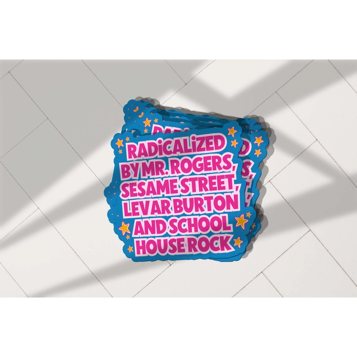 Take a trip down memory lane with our "Radicalized by Mr. Rogers" sticker! This snarky vinyl decal is perfect for anyone who grew up with the iconic shows that shaped generations—Mr. Rogers, Sesame Street, Levar Burton, and Schoolhouse Rock. Whether you're an 80s or 90s kid, this sticker lets you wear your childhood influences with pride.